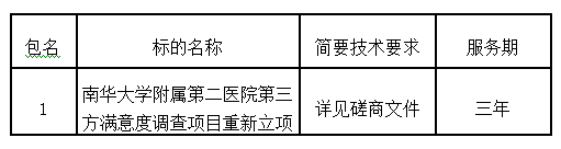 项目名称:南华大学附属第二医院第三方满意度调查项目重新立项