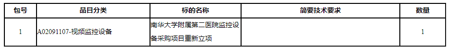 采购项目名称:南华大学附属第二医院监控设备采购项目重新立项