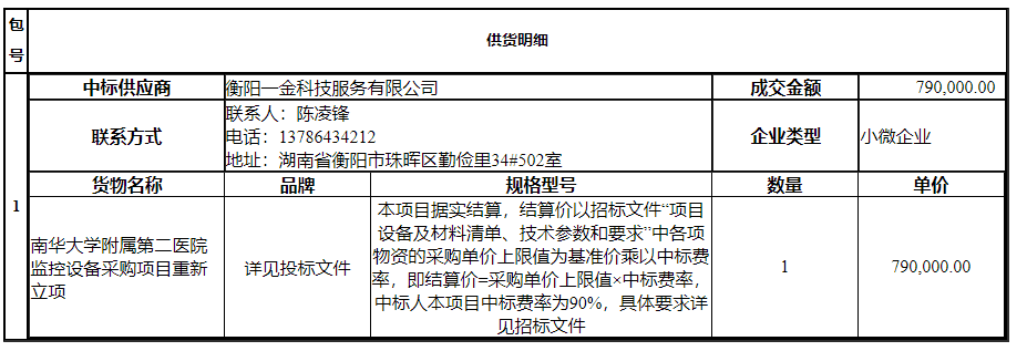 南华大学附属第二医院的南华大学附属第二医院监控设备采购项目重新立项公开招标采购项目于2024年02月20日结束,现将中标(成交)结果公告如下: