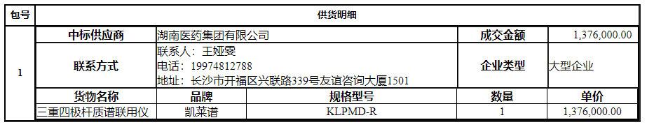 南华大学附属第二医院的南华大学附属第二医院三重四级杆质谱联用仪采购项目公开招标采购项目于2024年12月19日结束,现将中标(成交)结果公告如下: