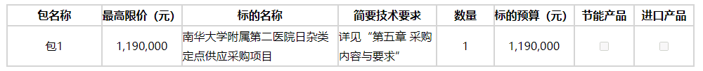 南华大学附属第二医院 的日杂类采购 进行公开招标采购,现邀请合格投标人参加投标。
