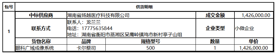 南华大学附属第二医院的南华大学附属第二医院眼科广域成像系统采购项目中标(成交)公告