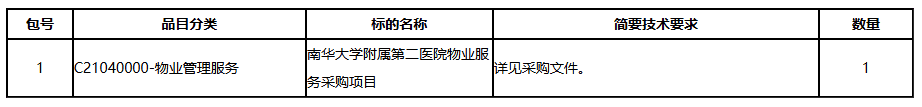 采购项目名称:南华大学附属第二医院物业服务采购项目