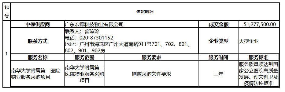 南华大学附属第二医院的南华大学附属第二医院物业服务采购项目公开招标采购项目于2025年06月12日结束,现将中标(成交)结果公告如下:
