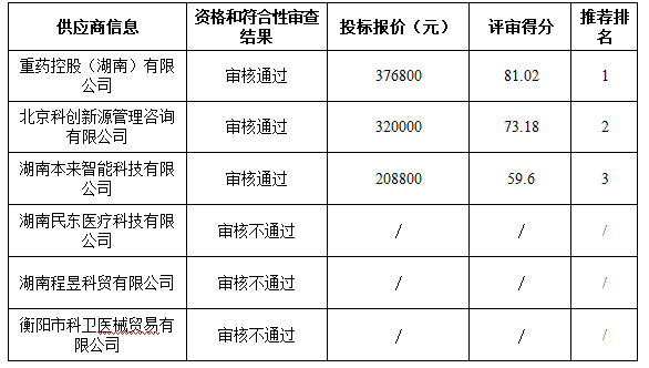 南华大学附属第二医院的南华大学附属第二医院脉动真空灭菌器采购项目公开招标采购于2024年09月20日结束,现将中标(成交)结果公告如下: