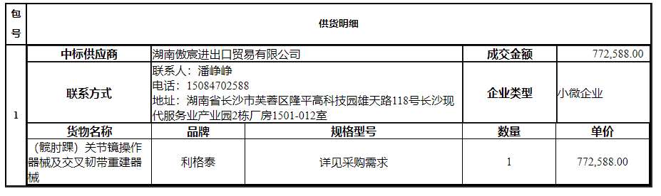 南华大学附属第二医院(髋肘踝)关节镜操作器械及交叉韧带重建器械采购项目中标(成交)公告