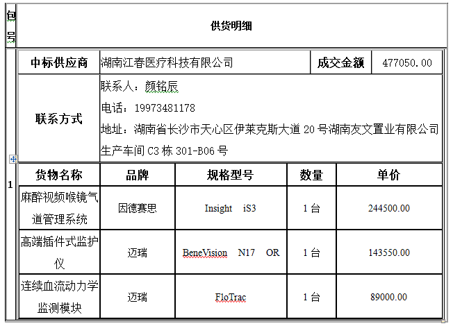 南华大学附属第二医院的南华大学附属第二医院麻醉科设备一批采购项目于2024年9月27日结束,现将中标(成交)结果公告如下: