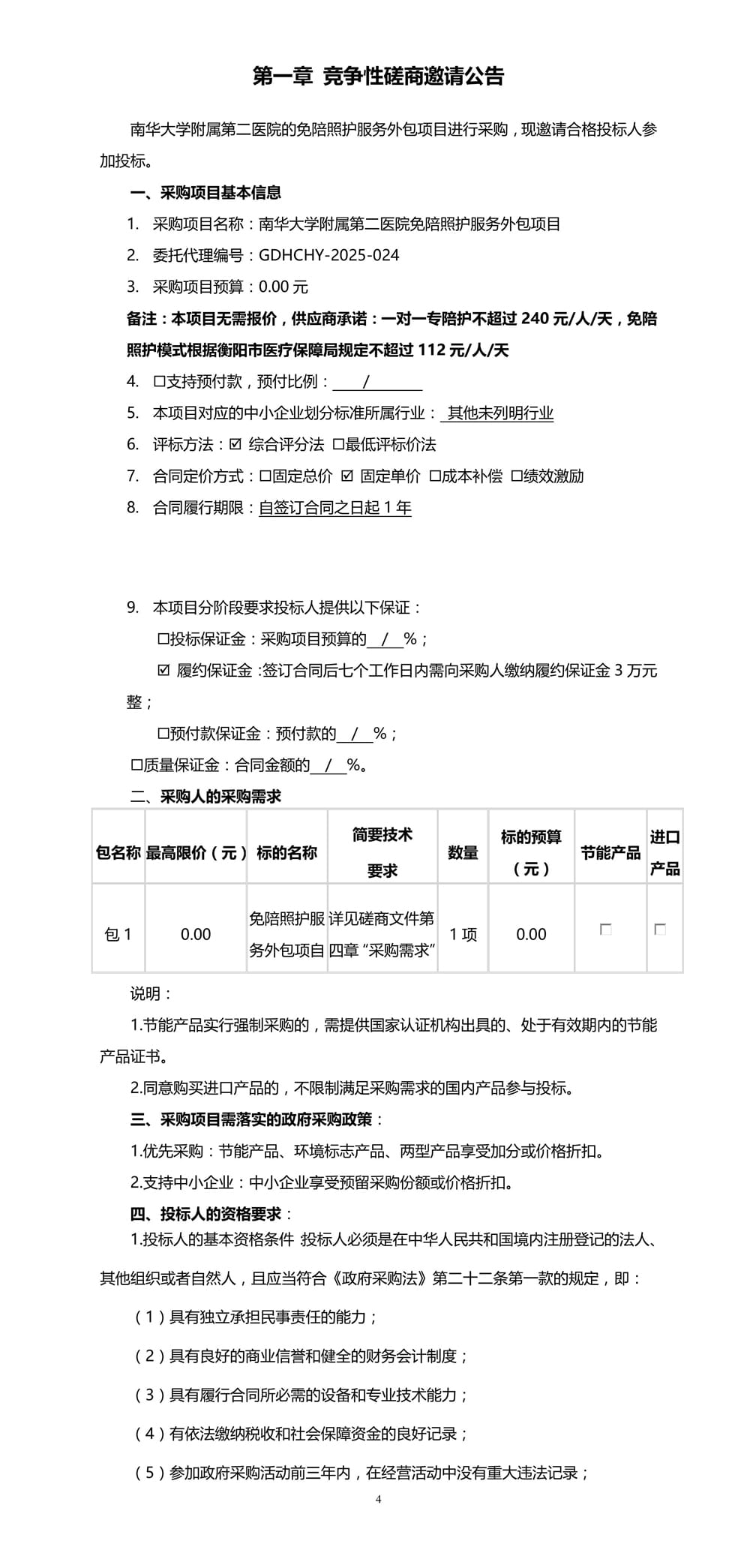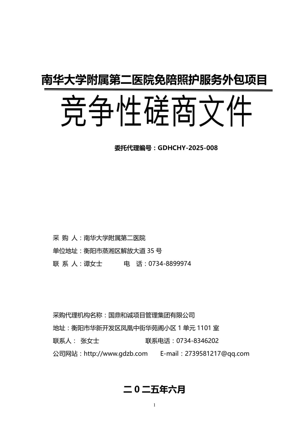 南华大学附属第二医院免陪照护服务外包项目竞争性磋商文件