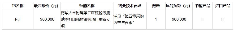 南华大学附属第二医院输液瓶贴类打印耗材采购项目重新立项项目公开招标公告