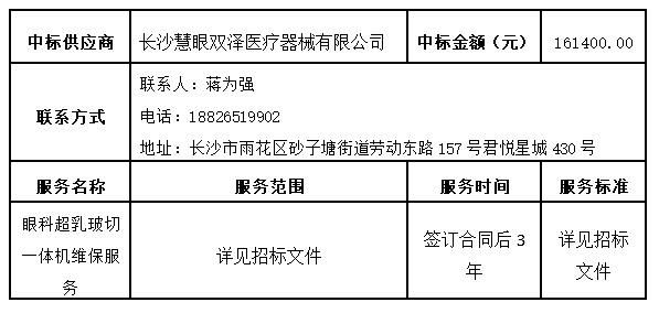 南华大学附属第二医院眼科超乳玻切一体机维保项目中标公告