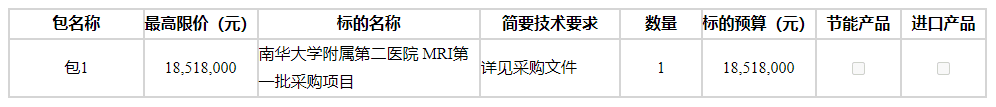 1、采购项目名称:南华大学附属第二医院 MRI第一批采购项目