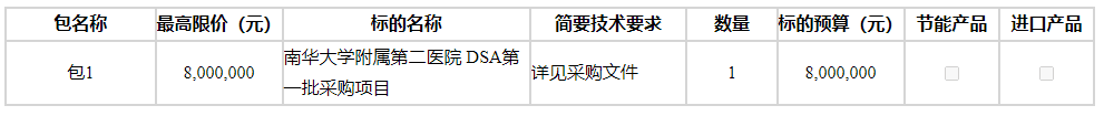 南华大学附属第二医院 的 DSA第一批采购进行公开招标采购,现邀请合格投标人参加投标。