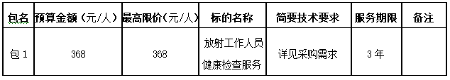 服务范围:放射工作人员健康检查服务,具体详见采购需求。