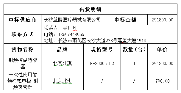南华大学附属第二医院的南华大学附属第二医院2024年医疗设备第七批采购项目于2025年01月26日结束,现将中标结果公告如下: