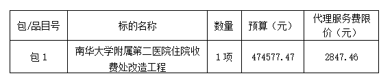 1、采购项目名称:南华大学附属第二医院住院收费处改造工程