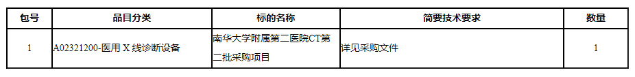采购项目名称:南华大学附属第二医院CT第二批采购项目
