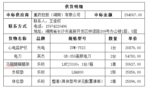 南华大学附属第二医院的南华大学附属第二医院门诊手术设备一批采购项目于2025年04月09日结束,现将中标结果公告如下: