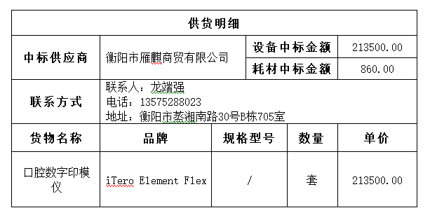 南华大学附属第二医院的南华大学附属第二医院口腔数字印模仪采购项目于2025年04月09日结束,现将中标结果公告如下: