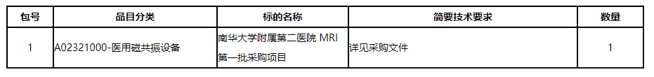 采购项目名称:南华大学附属第二医院 MRI第一批采购项目重新立项