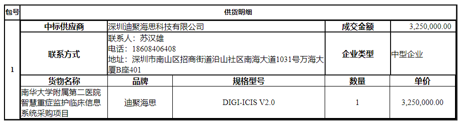 南华大学附属第二医院的南华大学附属第二医院智慧重症监护临床信息系统采购项目公开招标采购项目于2025年04月24日结束,现将中标(成交)结果公告如下: