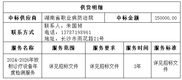 南华大学附属第二医院2024-2026年放射诊疗设备年度检测服务项目中标公告