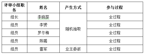 五、评审小组成员名单