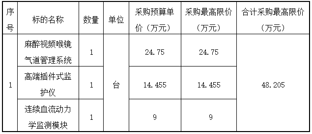 2.1项目名称:南华大学附属第二医院麻醉科设备一批采购项目