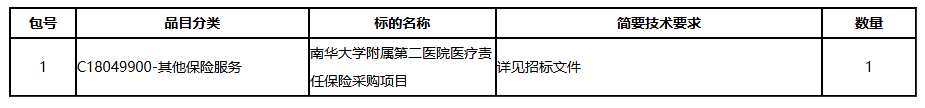 采购项目名称:南华大学附属第二医院医疗责任保险采购项目