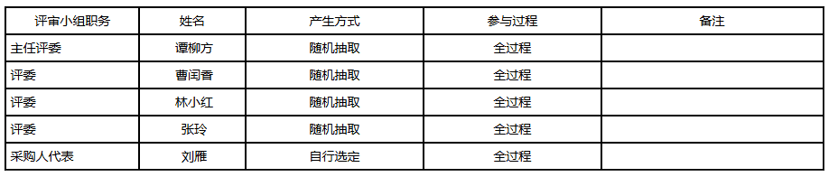 注:产生方式注明是随机抽取或自行选定;参与过程注明是确定供应商、谈判或全过程。