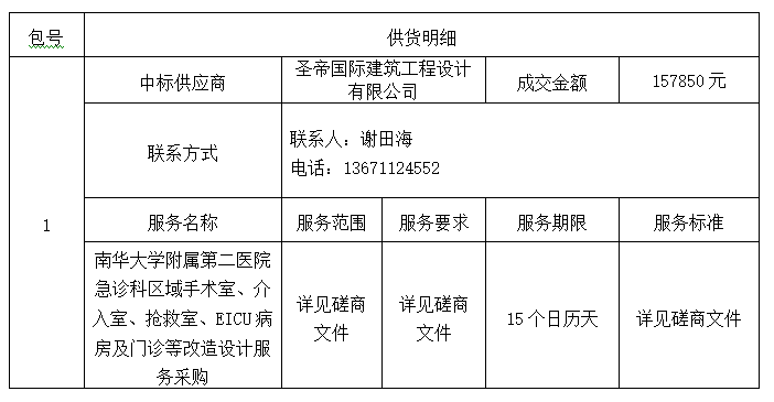 南华大学附属第二医院的南华大学附属第二医院急诊科区域手术室、介入室、抢救室、EICU病房及门诊等改造设计服务采购竞争性磋商采购项目于2025年05月08日结束,现将中标(成交)结果公告如下: