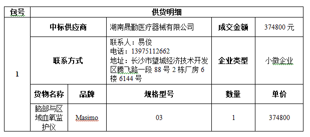 南华大学附属第二医院的脑部与区域血氧监护仪采购项目公开招标采购于2024年11月22日结束,现将中标(成交)结果公告如下: