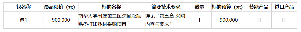 南华大学附属第二医院 的输液瓶贴类打印耗材采购 进行公开招标采购,现邀请合格投标人参加投标。
