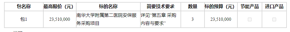 南华大学附属第二医院 的安保服务采购 进行公开招标采购,现邀请合格投标人参加投标。