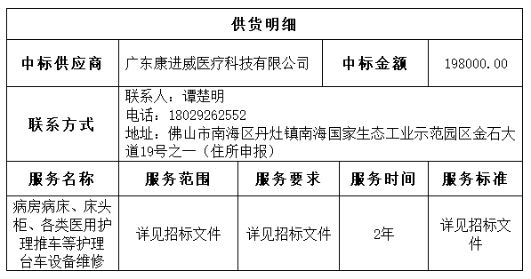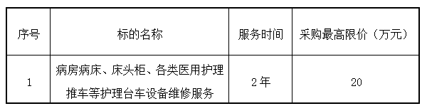 “病房病床、床头柜、各类医用护理推车等护理台车设备维修服务项目中标公告