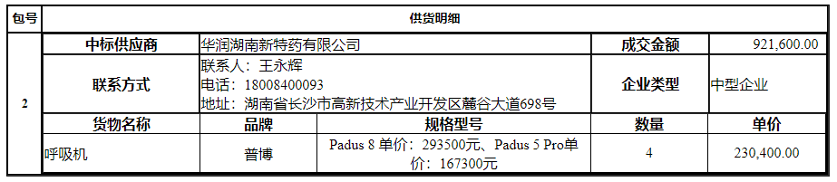 南华大学附属第二医院的南华大学附属第二医院呼吸机采购项目公开招标采购项目于2024年11月27日结束,现将中标(成交)结果公告如下:
