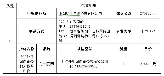 南华大学附属第二医院的南华大学附属第二医院2024年医疗设备第六批采购项目(二次)公开招标采购于2025年03月27日结束,现将中标(成交)结果公告如下: