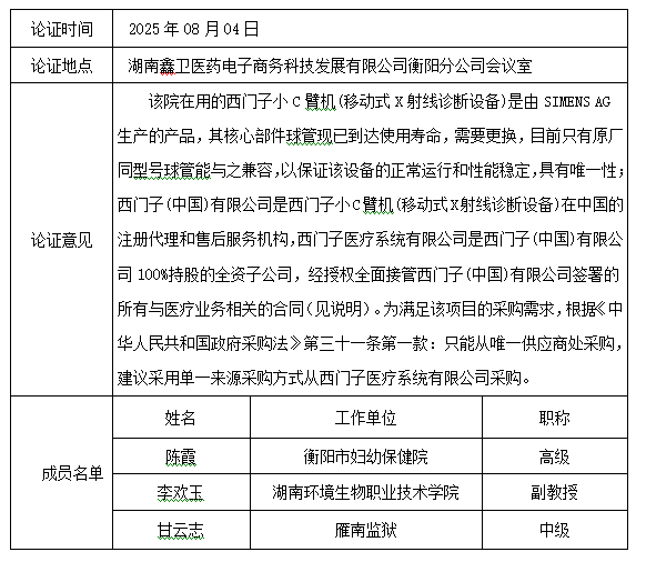 我院在用的西门子小C臂机(移动式X射线诊断设备)是由SIMENS AG生产的产品,其核心部件球管现已到达使用寿命,需要更换,目前只有原厂同型号球管能与之兼容,以保证该设备的正常运行和性能稳定,只能由西门子医疗系统有限公司维保,符合单一来源采购规定,故申请采用单一来源采购方式实施。