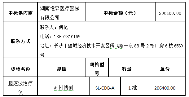 南华大学附属第二医院2025年医疗设备第一批采购项目于2025年8月15日进行了开评标,现将中标结果公告如下: