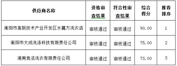 成交供应商名称:衡阳市高新技术产业开发区水魔方洗衣店