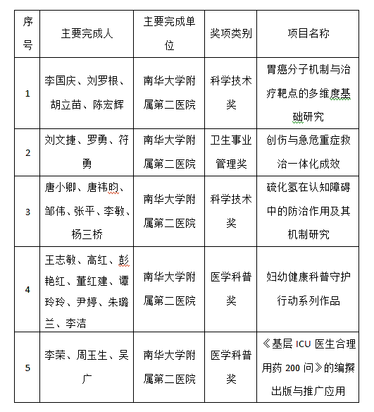 我单位作为第一完成单位完成的下列项目拟申报2025年度华夏医学科技奖,特进行公示。公示期:2025年3月5日至 2025年3月11日,公示期内如对公示内容有异议,请您向南华大学附属第二医院科研部反映。公示内容请点击附件下载。