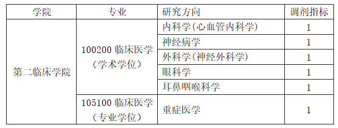 2、鉴于我校临床医学调剂复试时间统一,考生本次只能报考一个临床学院一个方向的调剂志愿;
