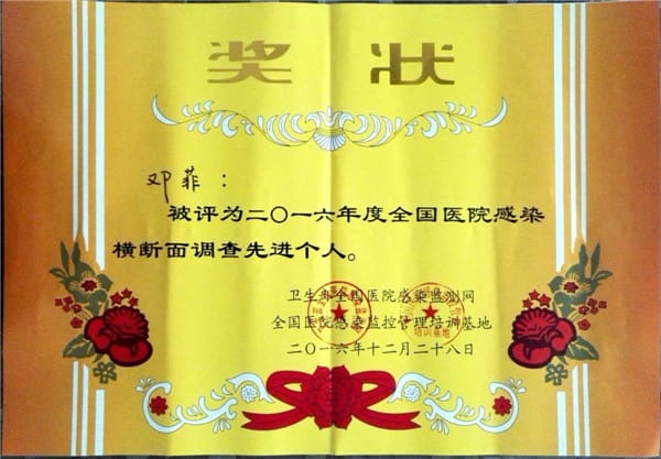 随后,质控中心主任陈敏传达了国家、省医院感染管理质量控制中心会议精神,汇报了市院感质控中心2016年度主要工作,布置了2017年质控中心的工作;会上,陈敏宣读了“2016年度全国及湖南省医院感染监测网医院感染横断面调查先进单位”及“先进个人”名单。我院荣获“2016年度全国医院感染监测网医院感染横断面调查先进单位”,我院邓菲被评为“2016年度全国医院感染横断面调查先进个人”!