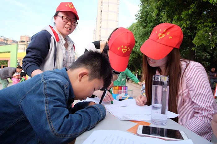 活动开展前期,志愿者们分为策划组、宣传组和物资筹备组,策划组负责活动的策划书,宣传组负责一张主题海报,三张以文字为主的各类污染主题海报,物资筹备组则负责活动奖品,为体现新意,特意学习折长条气球,“玫瑰花”、“棒棒糖”、“兔子”等高难度样式。