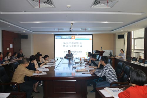 4月13日下午,我院在行政楼10楼大会议室召开2018年意识形态暨宣传工作专题会议,党政办副主任魏敏主持本次会议。南华大学校长助理、附二医院党委书记罗志刚,纪委书记刘安元,党委委员、院长助理曾健,党政办主任张晴川,各党支部书记,各科室通讯员及自媒体负责人参加会议。