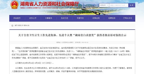 (通讯员梁蓉蓉)近日,从湖南省人社厅传来喜讯,我院荣获“湖南省卫生计生工作先进集体”称号,全省的综合性三级甲等医院仅有我院和中南大学湘雅三医院两家医院获此殊荣。