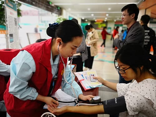 义诊活动现场,前来咨询市民络绎不绝,医护人员亲切询问前来义诊市民的身体状况,并免费发放防治宣传资料及测量血压、血糖,同时提供咨询、预防服务和个体化治疗方案,细致地为他们解答关于疾病预防和诊治等方面的疑惑。