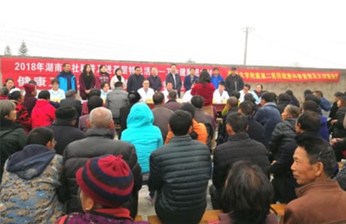 11月9日,我院组织专家参与湖南省社科联、南华大学健康文化宣传与研究基地在怀化市溆浦县大江口镇虎皮溪村举行的“健康卫生进农村,医疗扶贫显特色”的大型科普宣教及健康义诊服务活动。