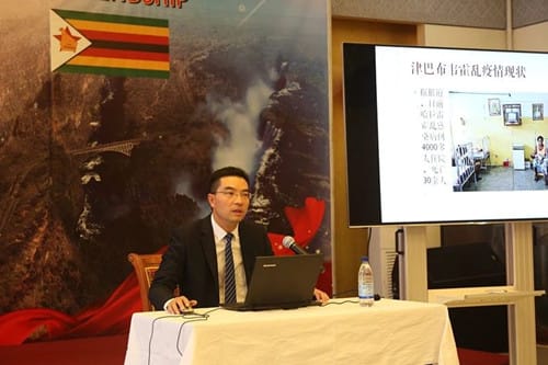 △陈劲松在驻津巴布韦大使馆进行霍乱防治知识讲座
