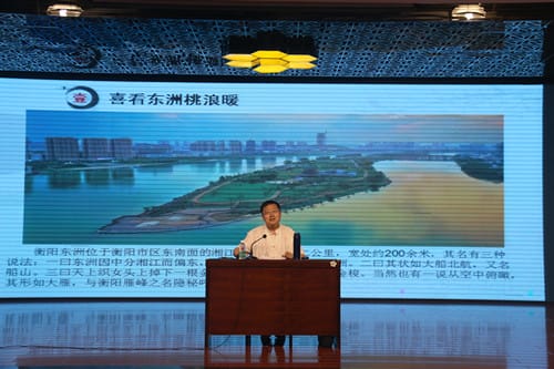 培训会上,谢宏治从喜看东洲桃浪暖、书院传灯领大潮、六经责我开生面三个方面细数东洲岛与船山书院的前世今生,介绍了众多文人墨客在东洲留下的创世佳作,讲述了王闿运执掌船山书院时期培养出杨度、齐白石、八指头陀等一大批杰出人物及王船山思想对中国近现代史的影响,谢宏治指出,王船山思想的精髓蕴含的忠于祖国与中华文化的民族精神、循公重民的人文精神、推顾开新的创造精神,崇实重有的辩证哲学对当下的社会主义精神文明建设依然具有十分重要的指导意义,是一笔宝贵的精神财富。