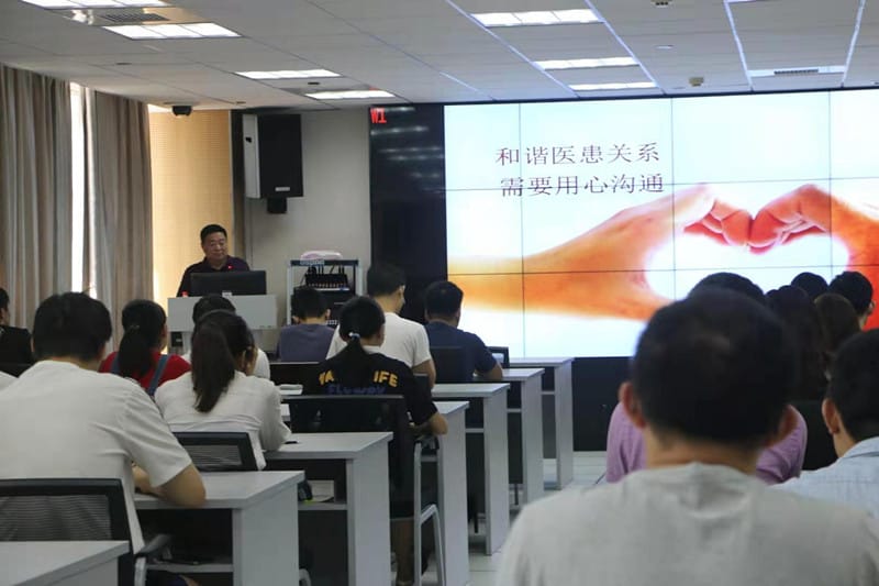 开班仪式结束后开始了为期4天的系统培训。培训期间,党委书记罗志刚向学员们讲述医务人员的三观精神依附,传达了品人文精神,享诗歌情怀,做天使境界,达完美人生的理念。党委副书记、副院长周玉生用七个案例细谈临床隐私问题,下级医生诊疗的评价,焦虑患者谈话,医生形象等具体问题;纪委书记刘安元从医德出发,详细介绍了南华附二“医诚术精,行方智圆” 的行医理念;副院长李国庆则以己为例分享自己学生时代经验——《医路上的“感”与“悟”》,警醒学生们光阴易逝,鼓励学生们勤能补拙。